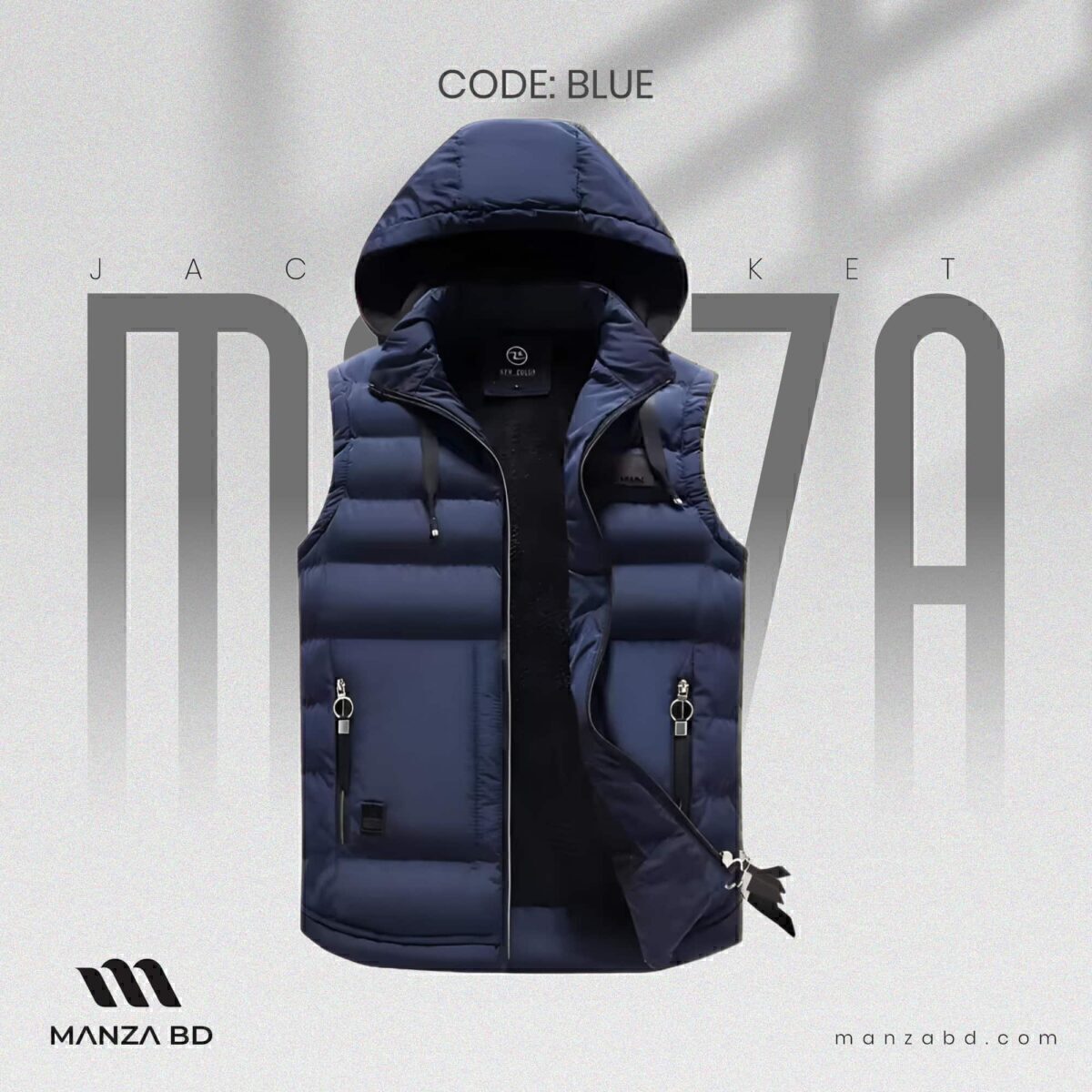 Blue Streetwear Vest for Men – Hooded, Warm Cotton-Polyester Padded Jacket