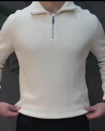 Jet Off-white Quarter-Zip Ribbed Sweater