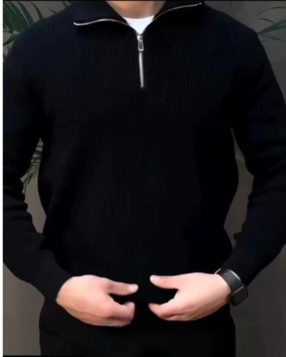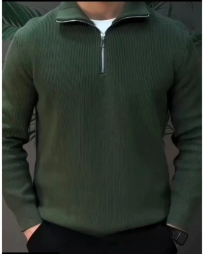 Jet Olive-Green Quarter-Zip Ribbed Sweater