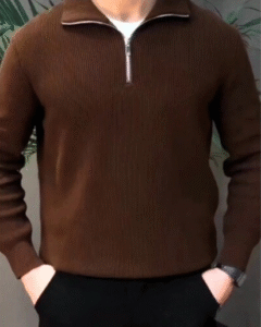 Jet Coffee Quarter-Zip Ribbed Sweater
